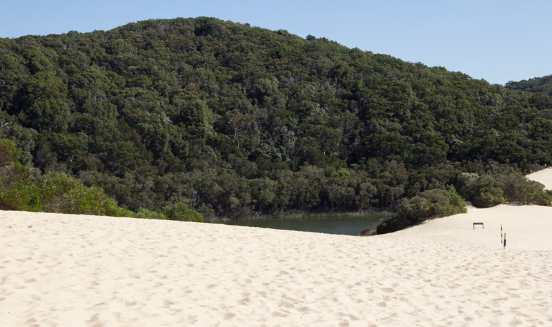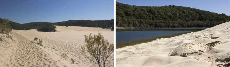 The second day we stopped first at Lake Wabby. The way to go is really nice and it’s always enjoyable to leave the car for a bit. We were really surprised when we arrived at the end with this huge sandy area surrounded by the forest and the lake in the middle like a border. An oasis in the middle of the desert.