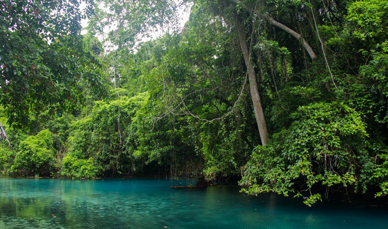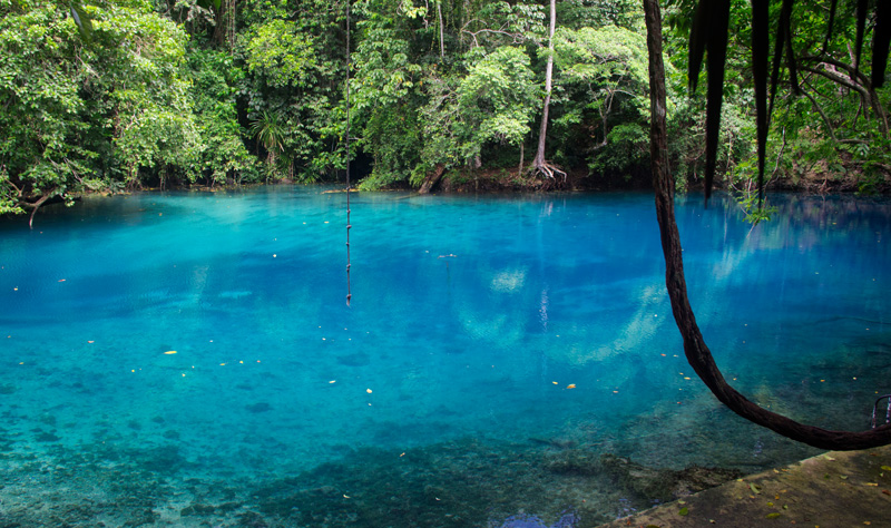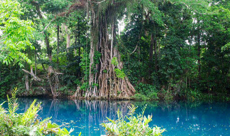 If you expect a blue hole in the sea, close to the beach you will be disappointed, in Espiritus Santo the blue holes are inland on the riverway where the water is really clear. The hole is actually cavities that have collapsed over time. The contrast in between the blue of the river and the one from the hole, darker depending on its depth is really impressive. In Riri, you can arrive with a canoe and appreciate the landscape along the river.