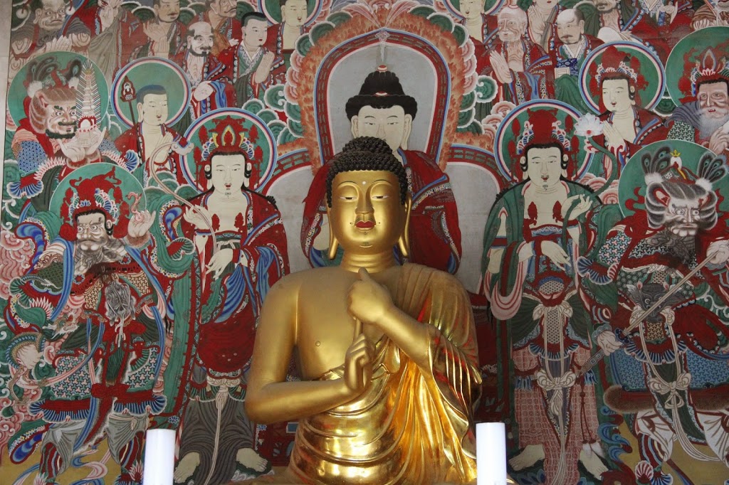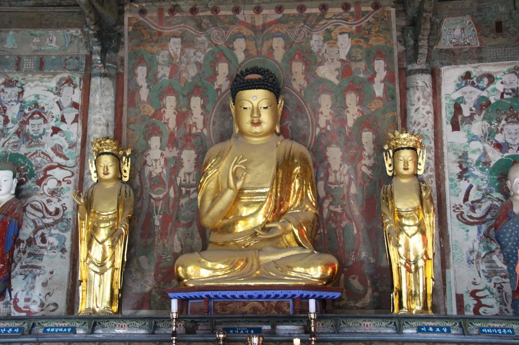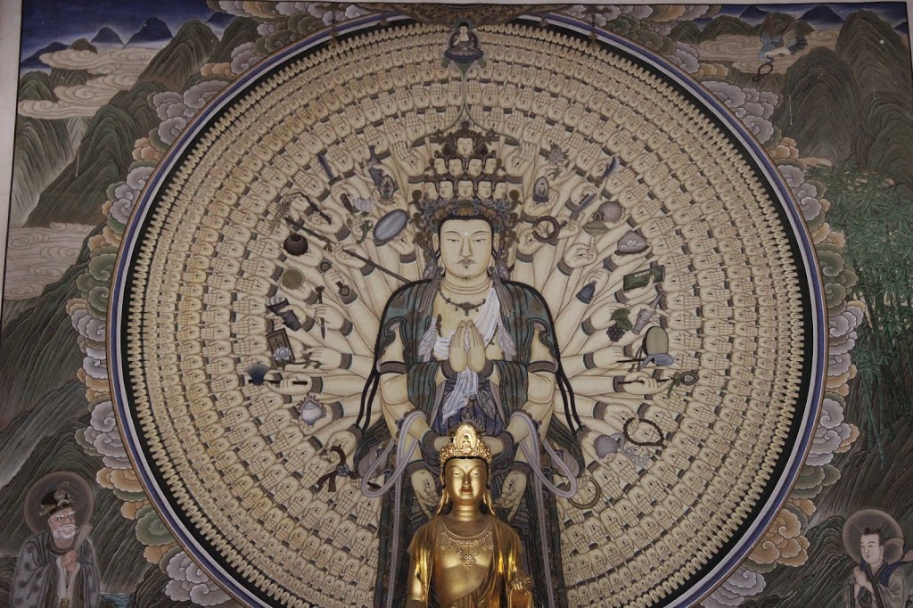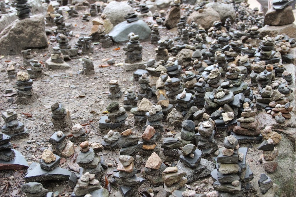 It’s a temple with many little building around the main temple, all with a lot of color in the blue and green tones, a lot of paint and decoration on the wood inside and outside. For us it’s big changement compare to China because of the softer colors. The place is wonderful, peacefull and korean are really nice. So nice that we were watching a vitrine and a korean come to us and started to explain us what was inside, great time. We found a little surprise at the back of one of the temple, a place with a lot of cairn, we never knew why here but for sur that was a bit poetic.