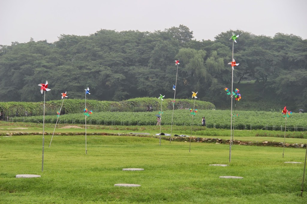 After that we visited Gyeongju. In the city you can find a big site with many parc and one with a lot of little hills, they are actually tombs and you can visit one of them. Just behind you have a big green place where koreans come to walk. There is a very flowery space, with flowers of the fields, a large space of lily pad. A whole space full of poetry.
