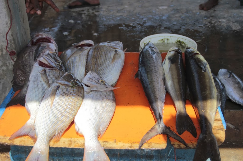 Sea breams, swordfishs, flying fishs and tiger shrimp, all really bigs. Such a shame to not have a kitchen to enjoy all those fresh product from this morning.