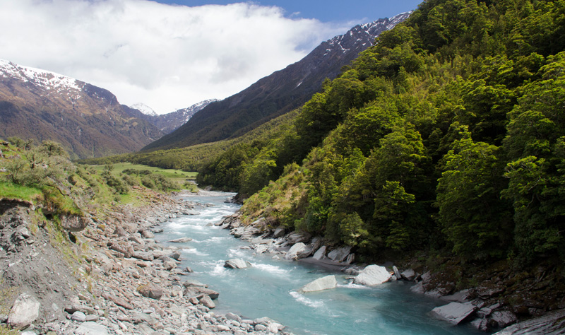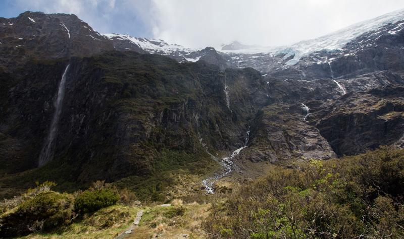 To go there you will have to drive 45 min on an unsealed road with some creeks to cross on the way, we advise you to check with the ranger the road condition, if the weather was bad you may not be able to drive trough these creeks. When you are at the carpark you just have to follow the signs, everything is really clear. The fun part of the hike is the beginning when you cross the fields with sheeps and cows looking at you with curiosity or ignorance. After crossing the suspended bridge the track goes up till the first view point, nice but the real show is further. Carry on walking even after the scary sign which tells you about avalanches risk (an other point you may want to check with the Rangers) and keep climbing during approximately 30 min. That is where you will get your reward : stunning views are here, in front of you with dozen waterfalls and the glaciers up there hanging on the mountain flanks.